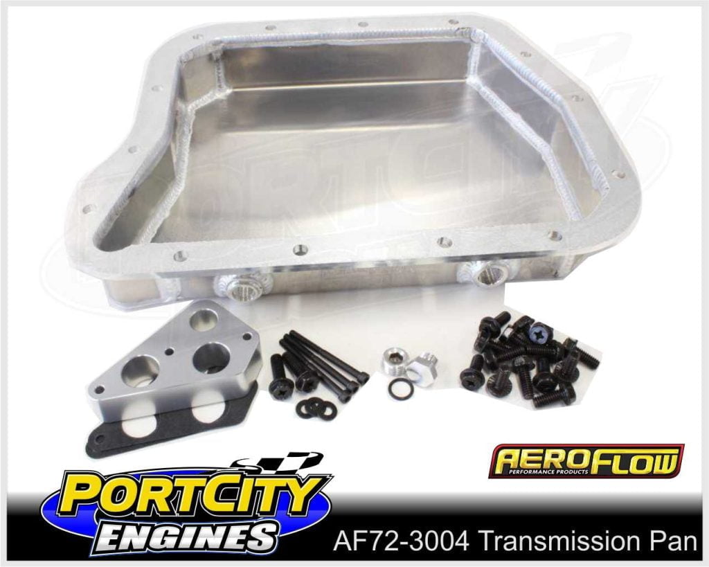 Aeroflow’s transmission pans use a one piece billet 3/8” (9.6mm) thick rail for precise fitment and strength. The deep fabricated aluminium design allows you to carry more oil to help reduce unwanted gearbox temperatures. All pans come with serrated flange bolts.